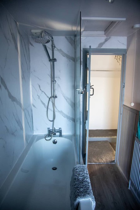 A modern family bathroom with a full-size bath and shower over serves the upstairs bedrooms. Guests also have access to an additional shower room with a walk-in shower, perfect for rinsing off sandy or muddy feet and paws after enjoying the beaches and country or coastal walks.